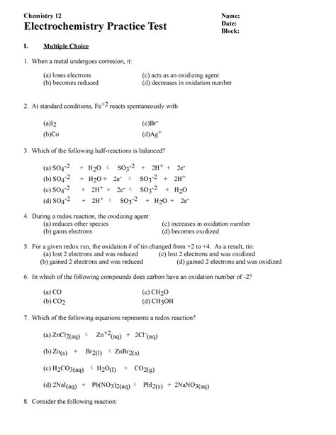 Download chemistry 12 electrochemistry test Doc ManyBooks